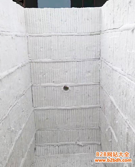 陶瓷纤维模块的保温结构为:平铺毯与陶瓷纤维模块相结合,模块非膨胀方向放置补偿条,以耐热钢锚固件预埋在陶瓷纤维模块的内部,不直接接触火焰,没有热短路,其结构科学合理,锚固牢固,抗热震和机械震动性强,节能效果好,施工方便快速,效果令人满意。