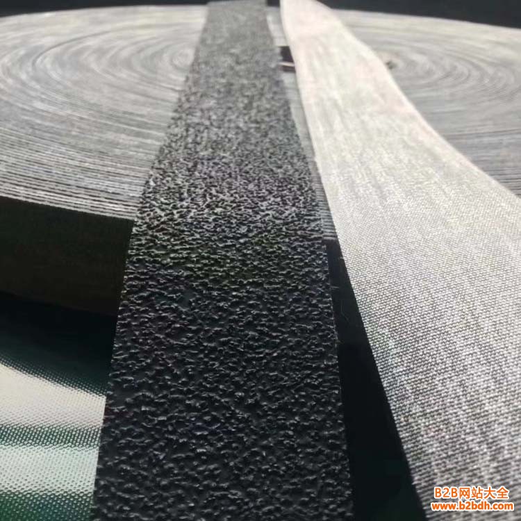我公司代理进口糙面带,公司拥有大量备货,规格型号齐全。主要有韩国BOLIM 德国BOBOTEX 等品牌产品,现已为多家进口纺织机械厂商做配套。该产品用于各种纺织印染设备进/出布处导辊表面增加摩擦力. 糙面带主要产品为以下用途: 1、新型高效扩幅带 2、索密特,必佳乐等剑杆机走梭绒布 3、片梭,喷水,喷气,剑杆织机用橡胶辊包皮 4、经编机,印染机,起毛机用黑绒布 5、分切机用软木橡胶带 通常的名称:糙面带、糙面橡皮(包辊带、糙面橡胶、刺皮、粒面橡胶、粒面橡皮,包辊皮,辊包皮,颗粒带,颗粒皮,粒面带,粒面皮,糙面皮,罗拉皮,防滑带) 防滑胶带又称软木胶带,英文名:CORKZ RUBBER。此产品表面为橡胶与软木混合压制而成,所以能产生良好的防滑效果,且有一定厚度,经久耐用。又因其表面外观象芝麻,所以又俗称芝麻胶带。防滑胶带的反面涂有特殊的压敏型胶粘剂,能将胶带牢牢地粘附在设备的导辊上。防滑胶带主要用在分切.复合机上的某些需要接触基材的导辊上,由于分切.复合机在高速运行中,基材很容易被辊上的毛刺刮伤,所以缠上此产品又能起到防拉丝的作用,全面提升您设备及产品的质量