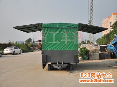 展翼型雨篷平板拖车工业平板拖车概述 是现代物流运输中简单有效的重要工具之一。仅需叉车或牵引车作牵引运动,不耗燃料,具有承重能力强、运输效率高等优势,适用于工厂、码头、港口、仓库等场区内大宗货物周转运输。