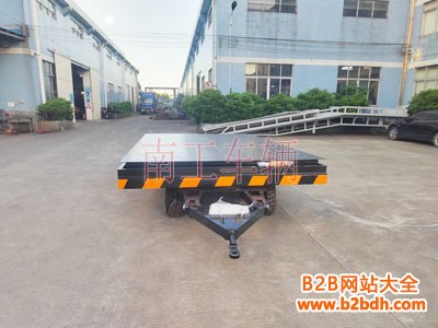10吨骨架式工业平板拖车加装电子称南工车辆长期非标订制,平板车用叉车或牵引车作牵引,不耗燃料,具有承重能力强、运输效率高等优势,适用于工厂、码头、港口、仓库等场区内大宗货物周转运输。本拖车因客户要求平台台面装有电子称,可根随时称载货物。